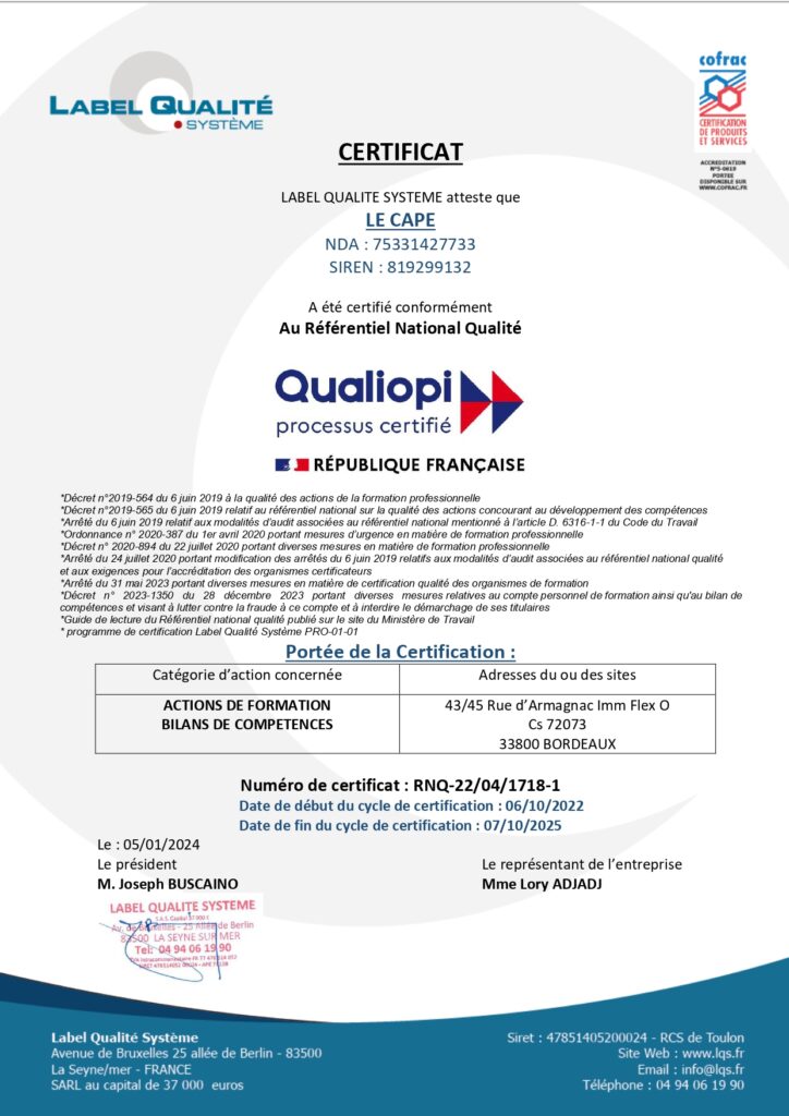 Résultats Qualité OF Le Cape